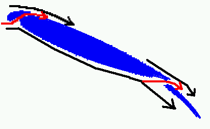 Pour qu'il y ait une portance, il faut un déplacement rapide du flux d'avant en arrière et une adhérence de ce flux sur le profil pour suivre la courbe vers le bas.