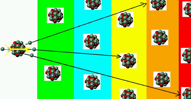 Pour qu'une réaction en chaine se produise, il faut donc que les neutrons émis lors de la division des noyaux rencontrent d'autres noyaux pour produire à leur tour d'autres fissions.